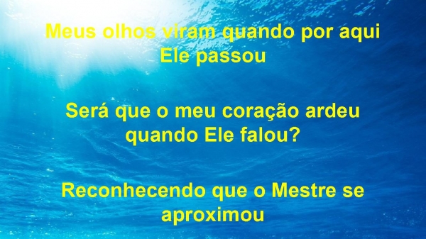 - Meus olhos viram quando por aqui Ele passouSerá que o meu coração ardeu quando Ele falou?Reconhecendo que o Mestre se aproximou