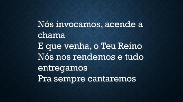 - Nós invocamos, acende a chamaE que venha, o Teu ReinoNós nos rendemos e tudo entregamosPra sempre cantaremos