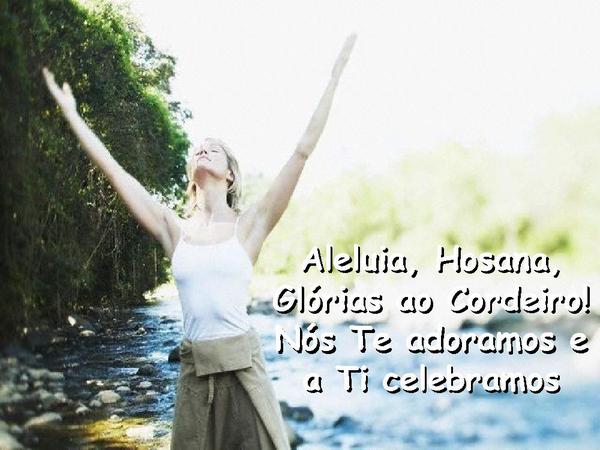 - Aleluia, Hosana,Glórias ao Cordeiro!Nós Te adoramos e a Ti celebramos,
