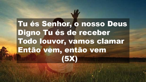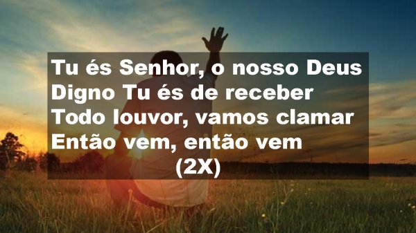 - Tu és Senhor, o nosso DeusDigno Tu és de receberTodo louvor, vamos clamarEntão vem, então vem (2X)