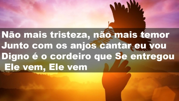 - Não mais tristeza, não mais temorJunto com os anjos cantar eu vouDigno é o cordeiro que Se entregou Ele vem, Ele vem