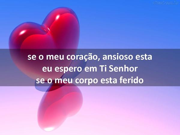 - se o meu coração, ansioso estaeu espero em Ti Senhorse o meu corpo esta ferido