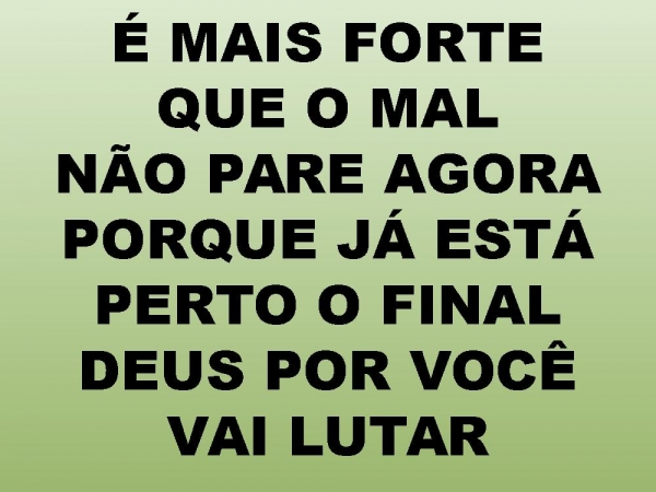 - É MAIS FORTE QUE O MALNÃO PARE AGORA PORQUE JÁ ESTÁ PERTO O FINALDEUS POR VOCÊ VAI LUTAR