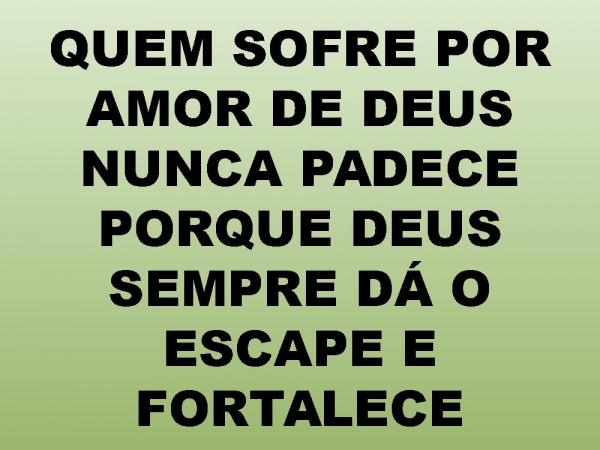 - QUEM SOFRE POR AMOR DE DEUS NUNCA PADECEPORQUE DEUS SEMPRE DÁ O ESCAPE E FORTALECE