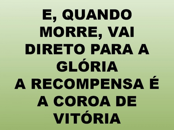 - E, QUANDO MORRE, VAI DIRETO PARA A GLÓRIAA RECOMPENSA É A COROA DE VITÓRIA