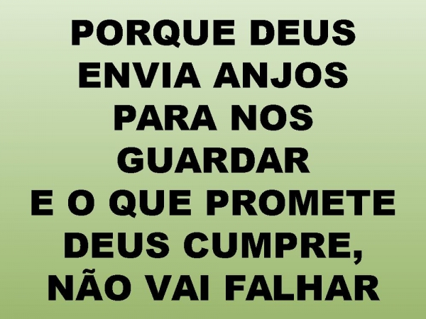 - PORQUE DEUS ENVIA ANJOS PARA NOS GUARDARE O QUE PROMETE DEUS CUMPRE, NÃO VAI FALHAR