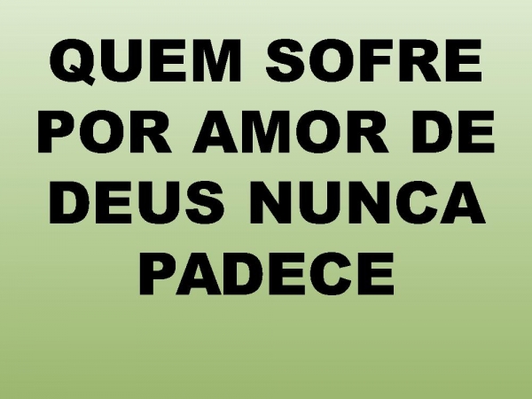 - QUEM SOFRE POR AMOR DE DEUS NUNCA PADECE