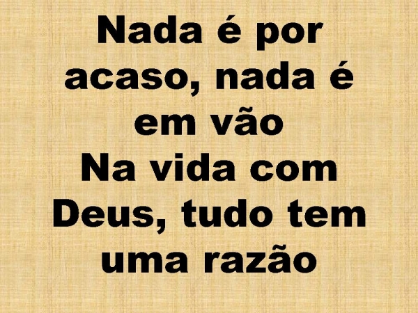 - Nada é por acaso, nada é em vãoNa vida com Deus, tudo tem uma razão