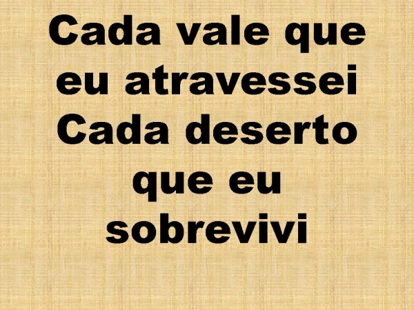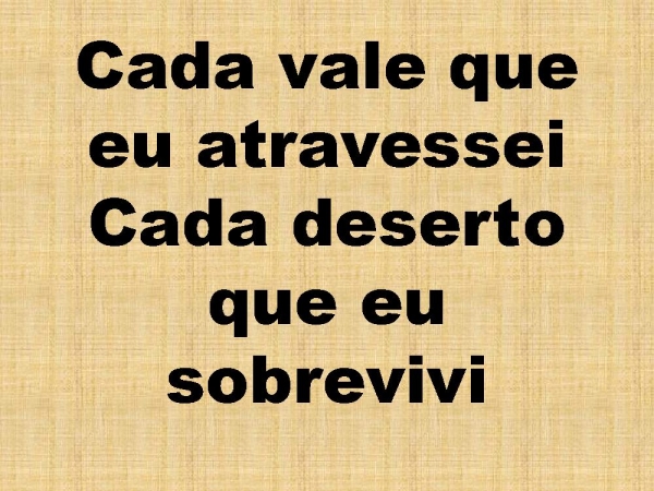 - Cada vale que eu atravesseiCada deserto que eu sobrevivi
