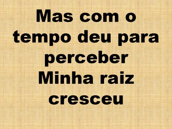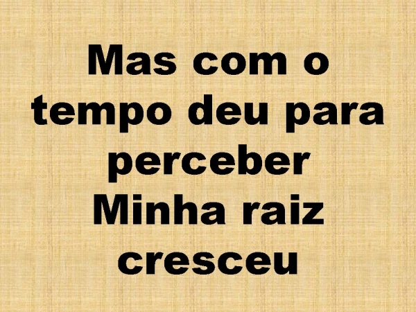 - Mas com o tempo deu para perceberMinha raiz cresceu