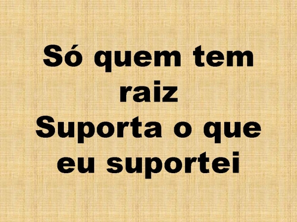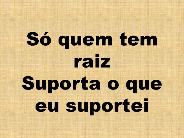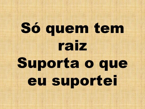 - Só quem tem raizSuporta o que eu suportei
