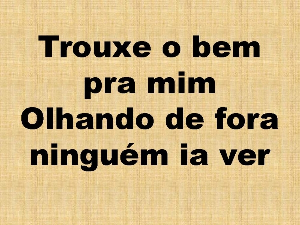 - Trouxe o bem pra mimOlhando de fora ninguém ia ver