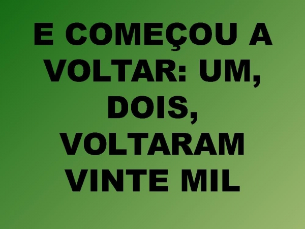 - E COMEÇOU A VOLTAR: UM, DOIS, VOLTARAM VINTE MIL