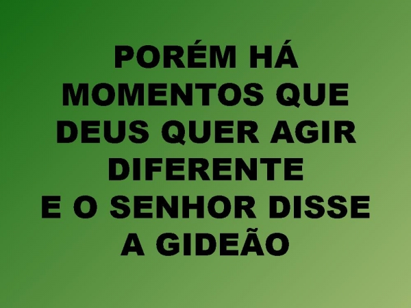 - PORÉM HÁ MOMENTOS QUE DEUS QUER AGIR DIFERENTEE O SENHOR DISSE A GIDEÃO