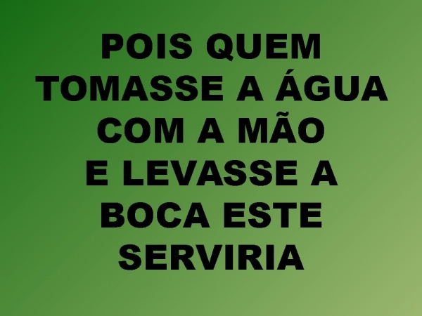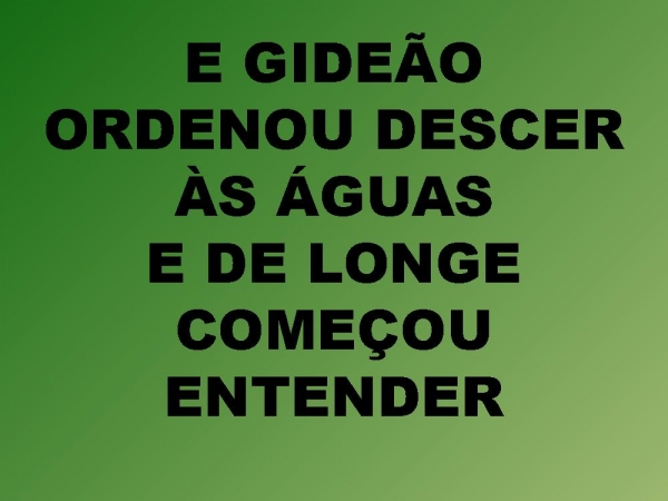 - E GIDEÃO ORDENOU DESCER ÀS ÁGUASE DE LONGE COMEÇOU ENTENDER