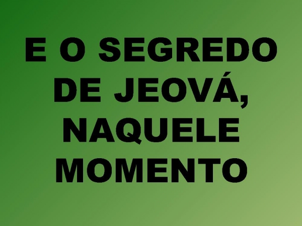 - E O SEGREDO DE JEOVÁ, NAQUELE MOMENTO