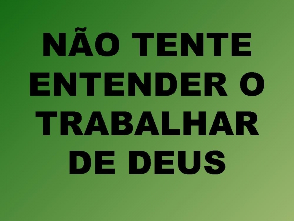 - NÃO TENTE ENTENDER O TRABALHAR DE DEUS