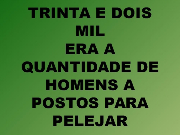 - TRINTA E DOIS MILERA A QUANTIDADE DE HOMENS A POSTOS PARA PELEJAR