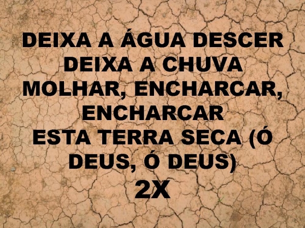 - DEIXA A ÁGUA DESCERDEIXA A CHUVA MOLHAR, ENCHARCAR, ENCHARCARESTA TERRA SECA (Ó DEUS, Ó DEUS)