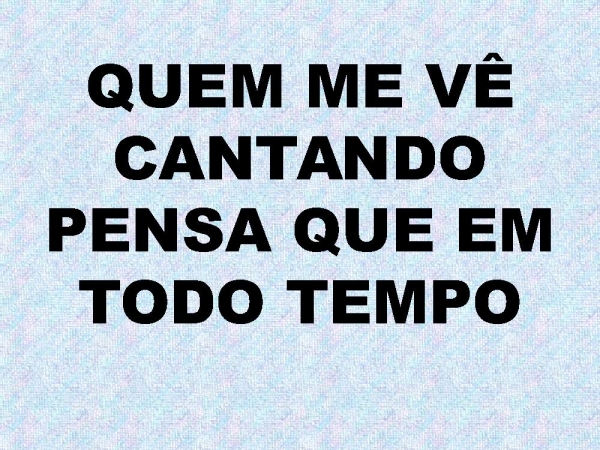 - QUEM ME VÊ CANTANDO PENSA QUE EM TODO TEMPO