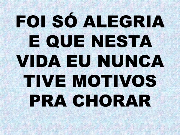 - FOI SÓ ALEGRIAE QUE NESTA VIDA EU NUNCA TIVE MOTIVOS PRA CHORAR