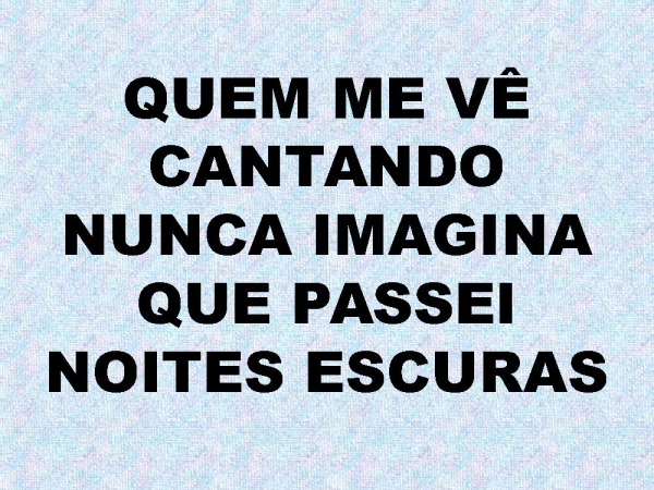 - QUEM ME VÊ CANTANDO NUNCA IMAGINAQUE PASSEI NOITES ESCURAS