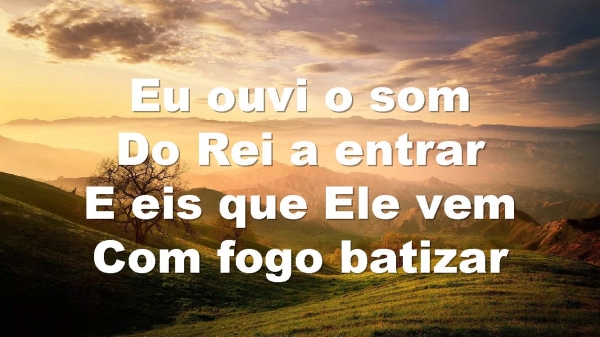 - Eu ouvi o somDo Rei a entrarE eis que Ele vemCom fogo batizar
