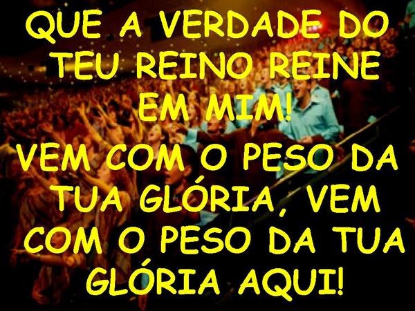 - QUE A VERDADE DO TEU REINO REINE EM MIM!VEM COM O PESO DA TUA GLÓRIA, VEM COM O PESO DA TUA GLÓRIA AQUI!