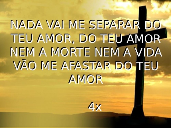 - NADA VAI ME SEPARAR DO TEU AMOR, DO TEU AMORNEM A MORTE NEM A VIDA VÃO ME AFASTAR DO TEU AMOR 4xNADA VAI ME SEPARAR DO TEU AMOR, DO TEU AMORNEM A MORTE NEM A VIDA VÃO ME AFASTAR DO TEU AMOR 4x