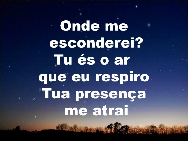 - Onde me esconderei?Tu és o ar que eu respiroTua presença me atrai