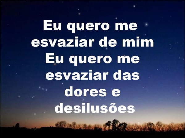 - Eu quero me esvaziar de mimEu quero me esvaziar das dores e desilusões