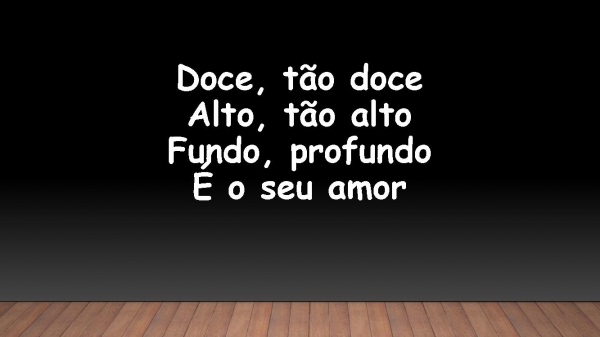 - Doce, tão doceAlto, tão altoFundo, profundoÉ o seu amor