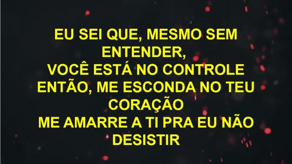 - EU SEI QUE, MESMO SEM ENTENDER, VOCÊ ESTÁ NO CONTROLEENTÃO, ME ESCONDA NO TEU CORAÇÃOME AMARRE A TI PRA EU NÃO DESISTIR