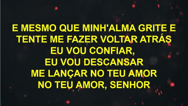 - E MESMO QUE MINH'ALMA GRITE E TENTE ME FAZER VOLTAR ATRÁSEU VOU CONFIAR, EU VOU DESCANSARME LANÇAR NO TEU AMORNO TEU AMOR, SENHOR