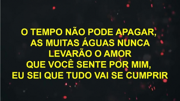 - O TEMPO NÃO PODE APAGAR, AS MUITAS ÁGUAS NUNCA LEVARÃO O AMORQUE VOCÊ SENTE POR MIM, EU SEI QUE TUDO VAI SE CUMPRIR