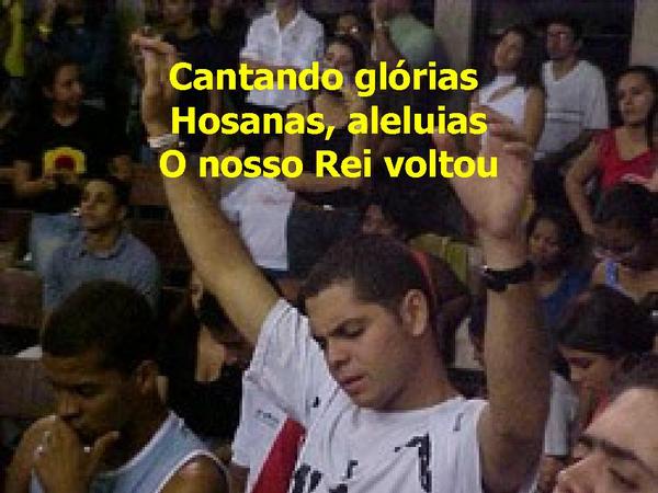 - Cantando glórias Hosanas, aleluiasO nosso Rei voltou