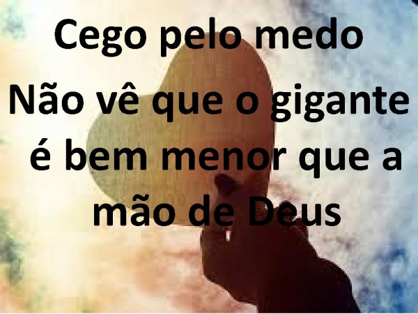 - Cego pelo medoNão vê que o gigante é bem menor que a mão de Deus