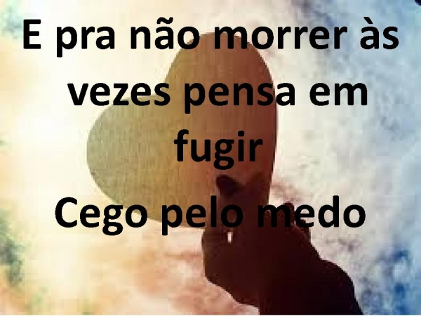 - E pra não morrer às vezes pensa em fugirCego pelo medo
