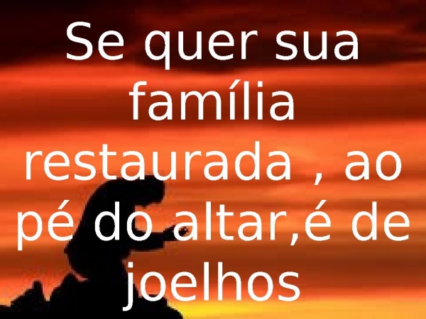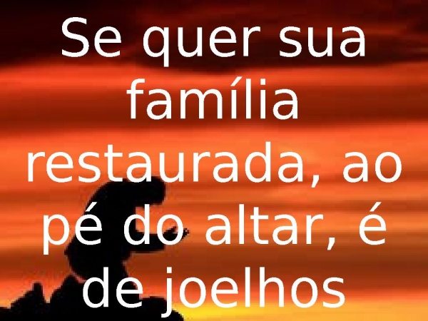 - Se quer sua família restaurada , ao pé do altar,é de joelhos
