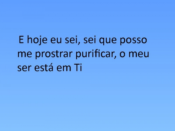 - E hoje eu sei, sei que posso me prostrar purificar, o meu ser está em Ti