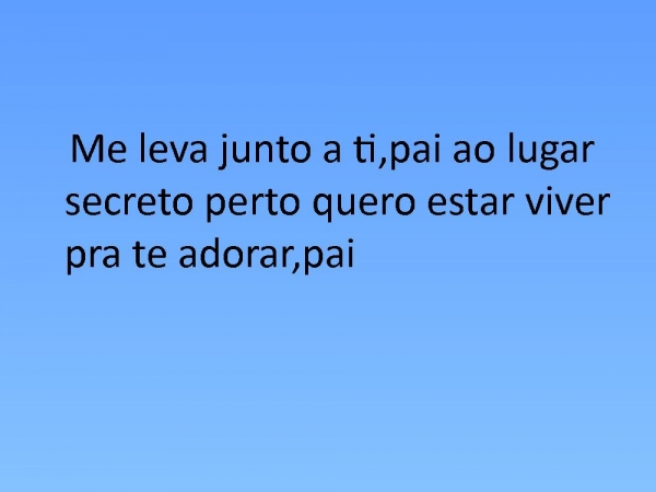 - Me leva junto a ti,pai ao lugar secreto perto quero estar viver pra te adorar,pai