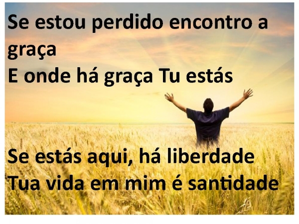- Se estou perdido encontro a graçaE onde há graça Tu estásSe estás aqui, há liberdadeTua vida em mim é santidade