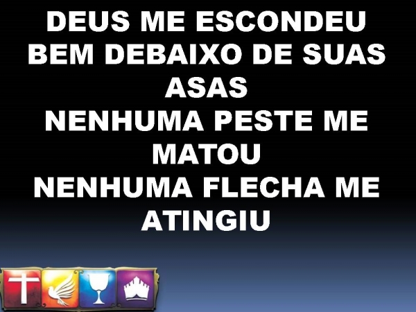 - DEUS ME ESCONDEU BEM DEBAIXO DE SUAS ASASNENHUMA PESTE ME MATOUNENHUMA FLECHA ME ATINGIU