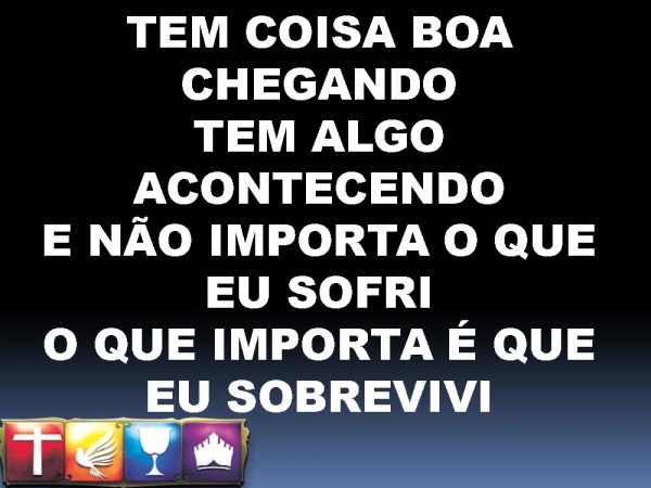 - TEM COISA BOA CHEGANDOTEM ALGO ACONTECENDOE NÃO IMPORTA O QUE EU SOFRIO QUE IMPORTA É QUE EU SOBREVIVI