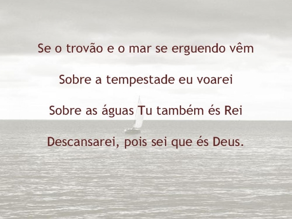 - Se o trovão e o mar se erguendo vêmSobre a tempestade eu voareiSobre as águas Tu também és ReiDescansarei, pois sei que és Deus.