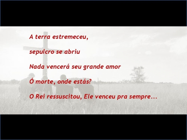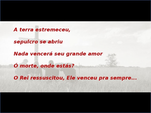 - A terra estremeceu, sepulcro se abriuNada vencerá seu grande amorÓ morte, onde estás? O Rei ressuscitou, Ele venceu pra sempre...