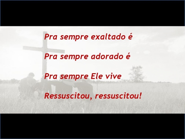 - Pra sempre exaltado éPra sempre adorado éPra sempre Ele viveRessuscitou, ressuscitou!