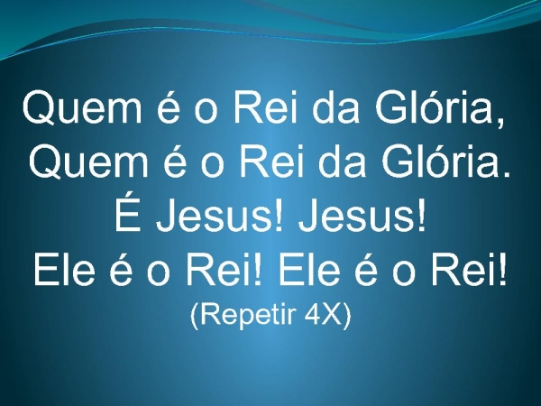 - Quem é o Rei da Glória, Quem é o Rei da Glória.É Jesus! Jesus!Ele é o Rei! Ele é o Rei!(Repetir 4X)