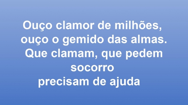 - Ouço clamor de milhões, ouço o gemido das almas.Que clamam, que pedem socorro precisam de ajuda