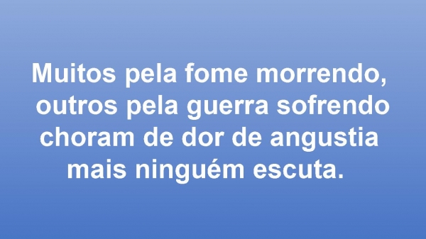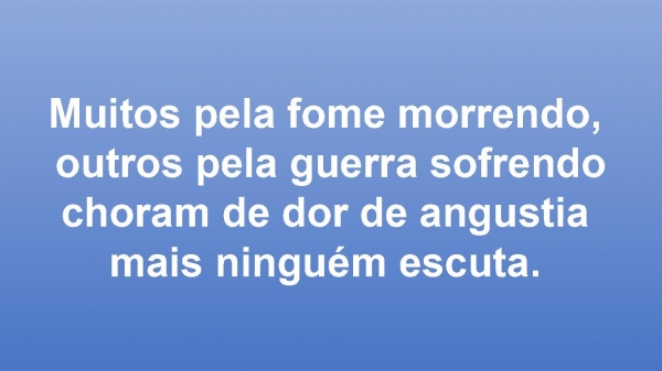 - Muitos pela fome morrendo, outros pela guerra sofrendochoram de dor de angustia mais ninguém escuta.